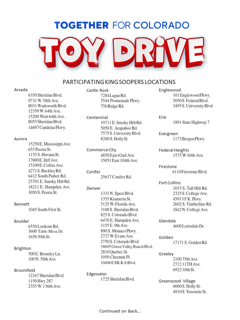 Toy Drive King Soopers Locations 2023 PDF Colorado