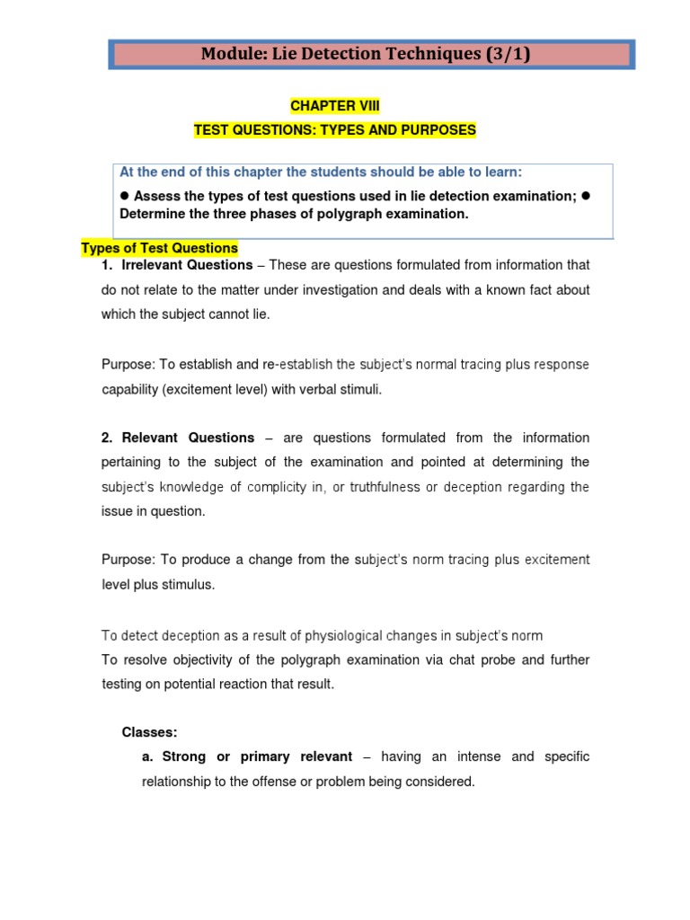 Chapter Viii Test Questions Types and Purposes PDF Polygraph