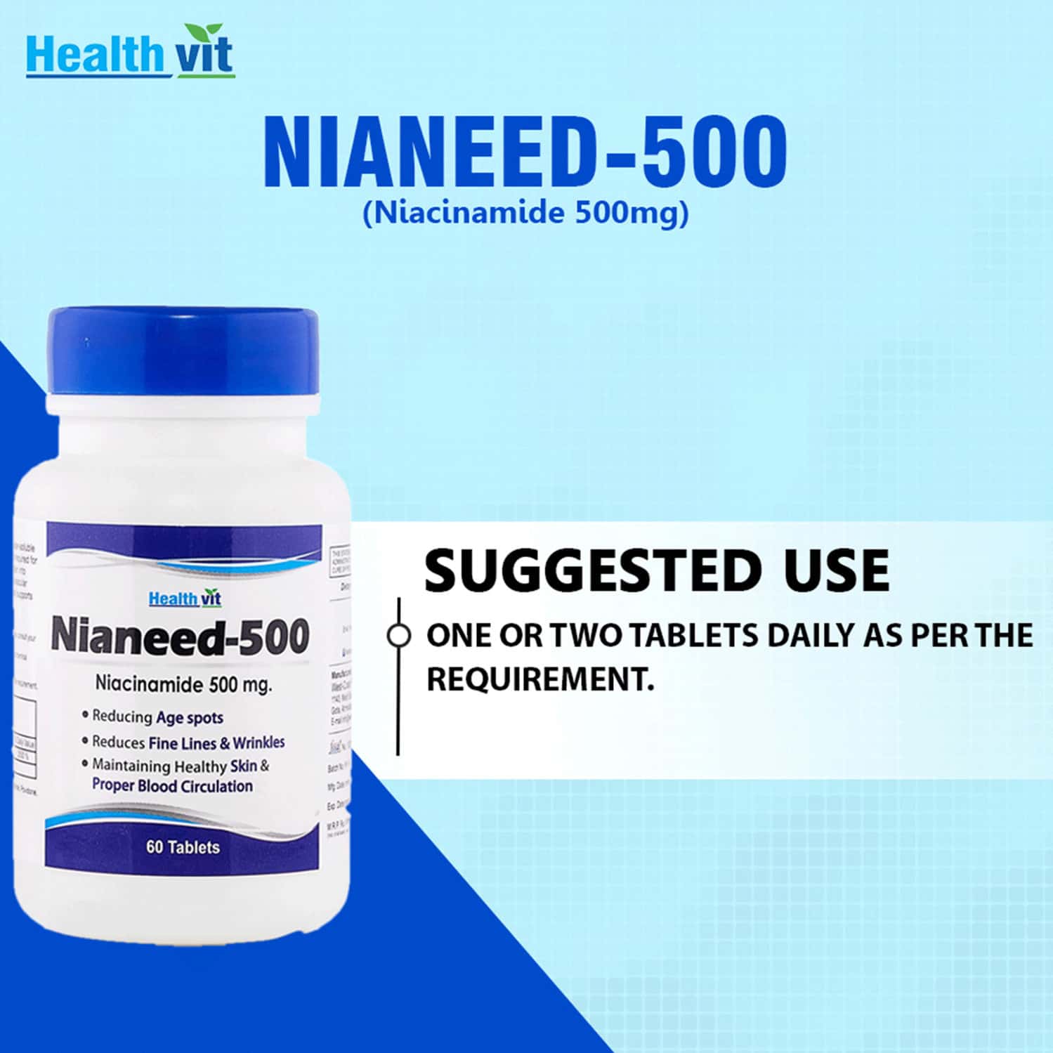 Buy HEALTHVIT NIANEED 500 NIACINAMIDE 500MG 60 TABLETS Online & Get