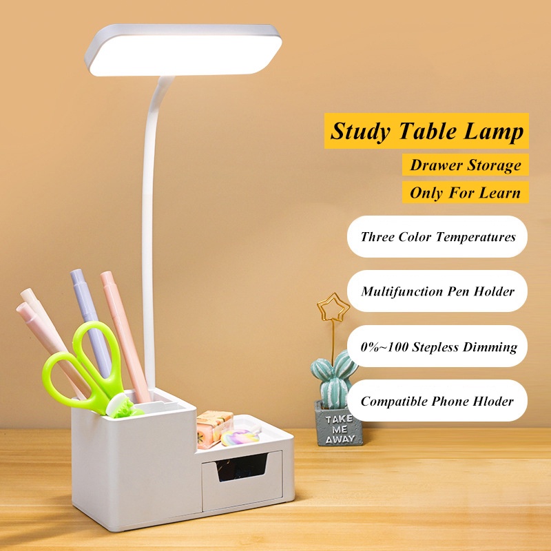Storage Table Lamp LED Desk Lamp With Pen Holder Study Lamp Shade