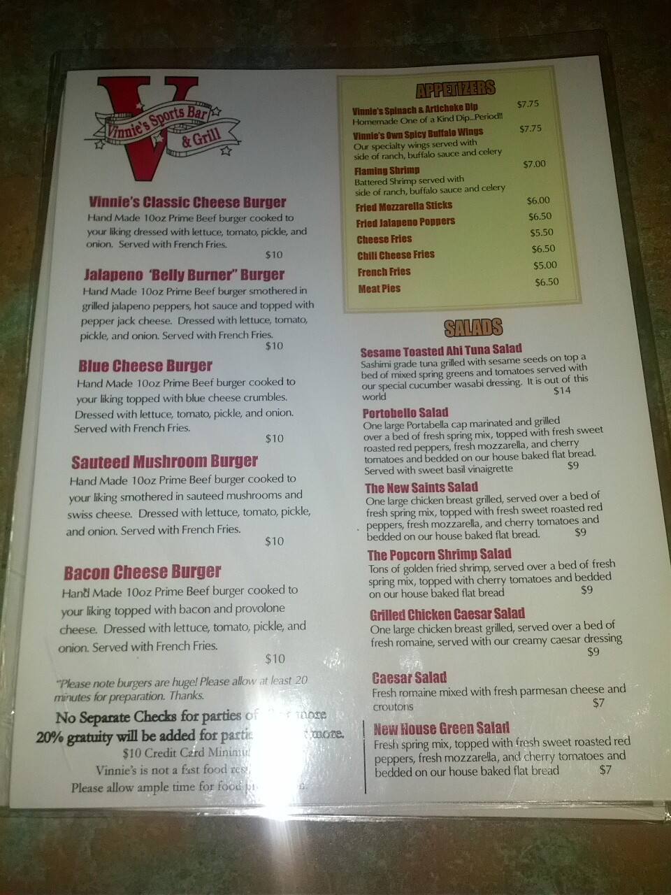 Menu of Vinnie's Sports Bar & Grill in Gretna, LA 70053 Vinnie's Bar And Grill Menu Your choice of chicken breast, sirloin steak, or shrimp sautéed with specialty spices and grilled to perfection with. View the menu, check prices, find on the map, see photos and ratings. View the online menu of vinnie's bar and grill and other restaurants in coudersport, pennsylvania. A casual eatery offering breakfast, pub grub & drinks, pool tables, dart boards, backyard. Vinnie's Bar And Grill Menu.