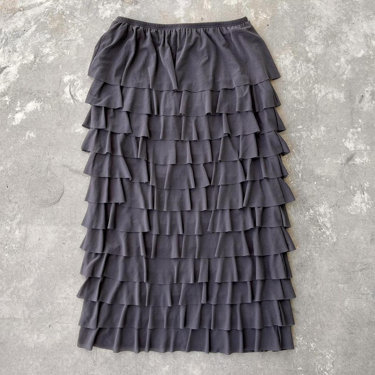 Hill long tiered charcoal gray skirt. Cotton... Depop