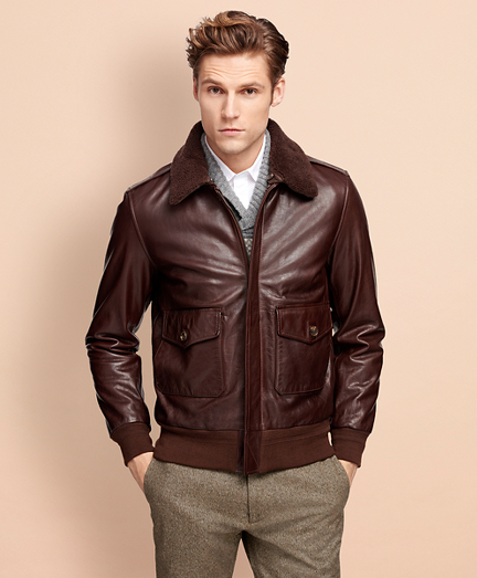 Men's Brown Leather Bomber Jacket Brooks Brothers