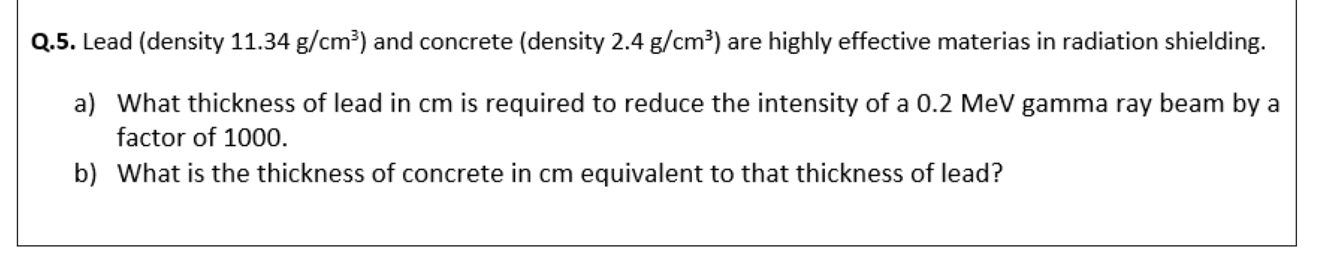 Solved Q.5. Lead (density 11.34 g/cm3 ) and concrete
