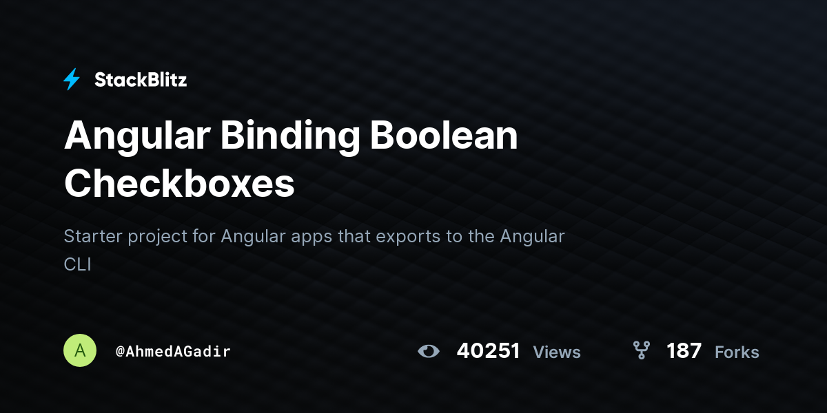 Angular Binding Boolean Checkboxes StackBlitz Angularjs Component Boolean Binding import { component } from '@angular/core'; in angularjs, when we define a component (or a directive), we can create inner scope variables from attributes. use property binding to dynamically set values for properties and attributes. though you could technically set the [attr.disabled] attribute binding, the values are different in that the property. in this lesson,. Angularjs Component Boolean Binding.