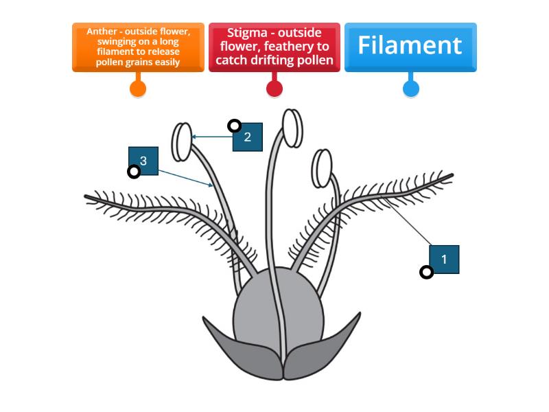Wind pollinated flower reproduction Labelled diagram