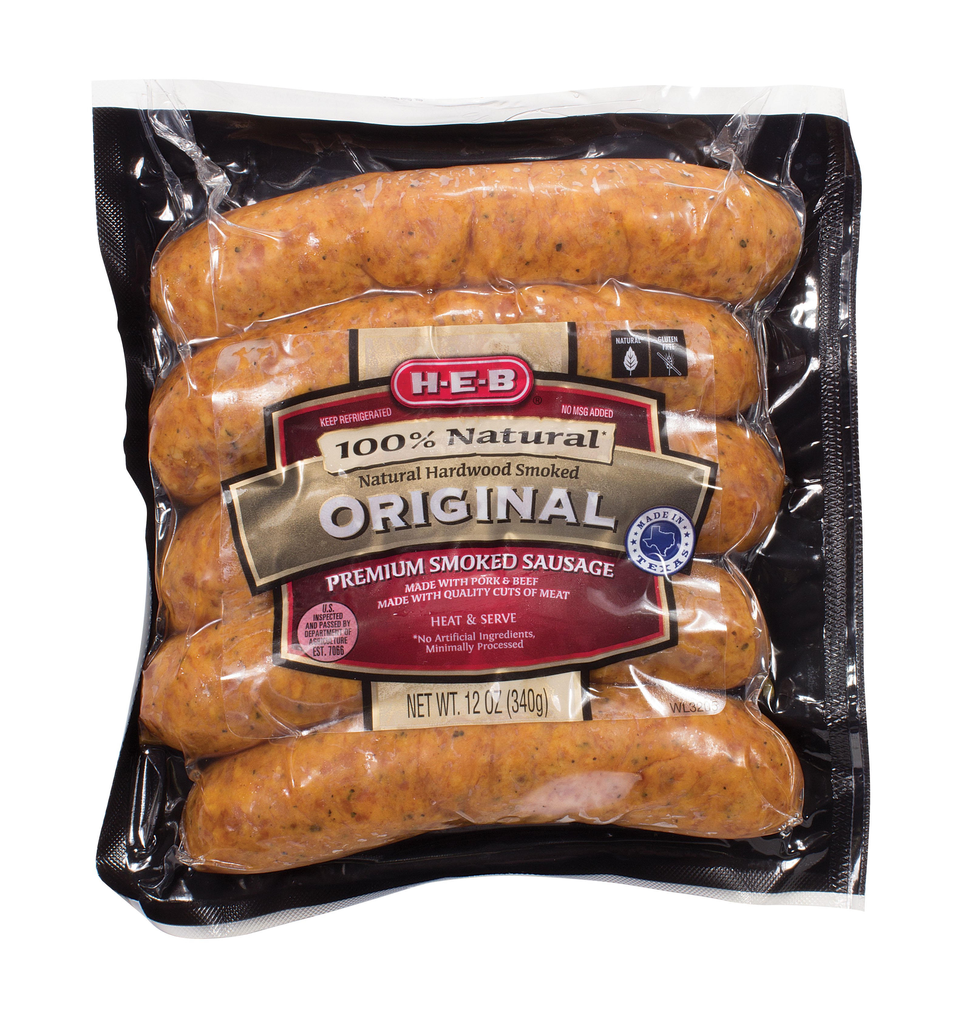 HEB 100 Natural Original Premium Smoked Sausage Shop Sausage at HEB