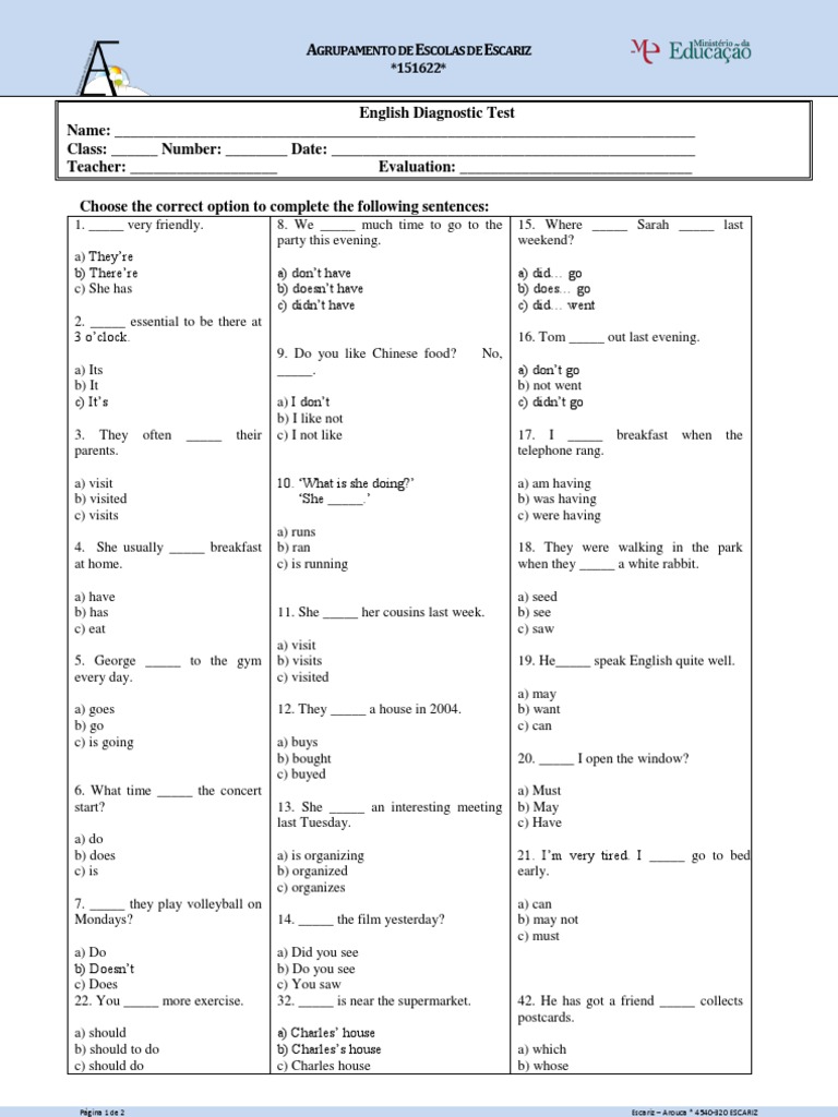 Diagnostic Test English ESL worksheets pdf & doc What Is A Diagnostic English Test There are of course many other types of tests. In contrast to achievement and proficiency tests, diagnostic tests are typically given at the start of a language learning course or program. Discover your level of english with our quick, free online test. A diagnostic test highlights the strong and weak points that a learner may have in a particular area.. What Is A Diagnostic English Test.