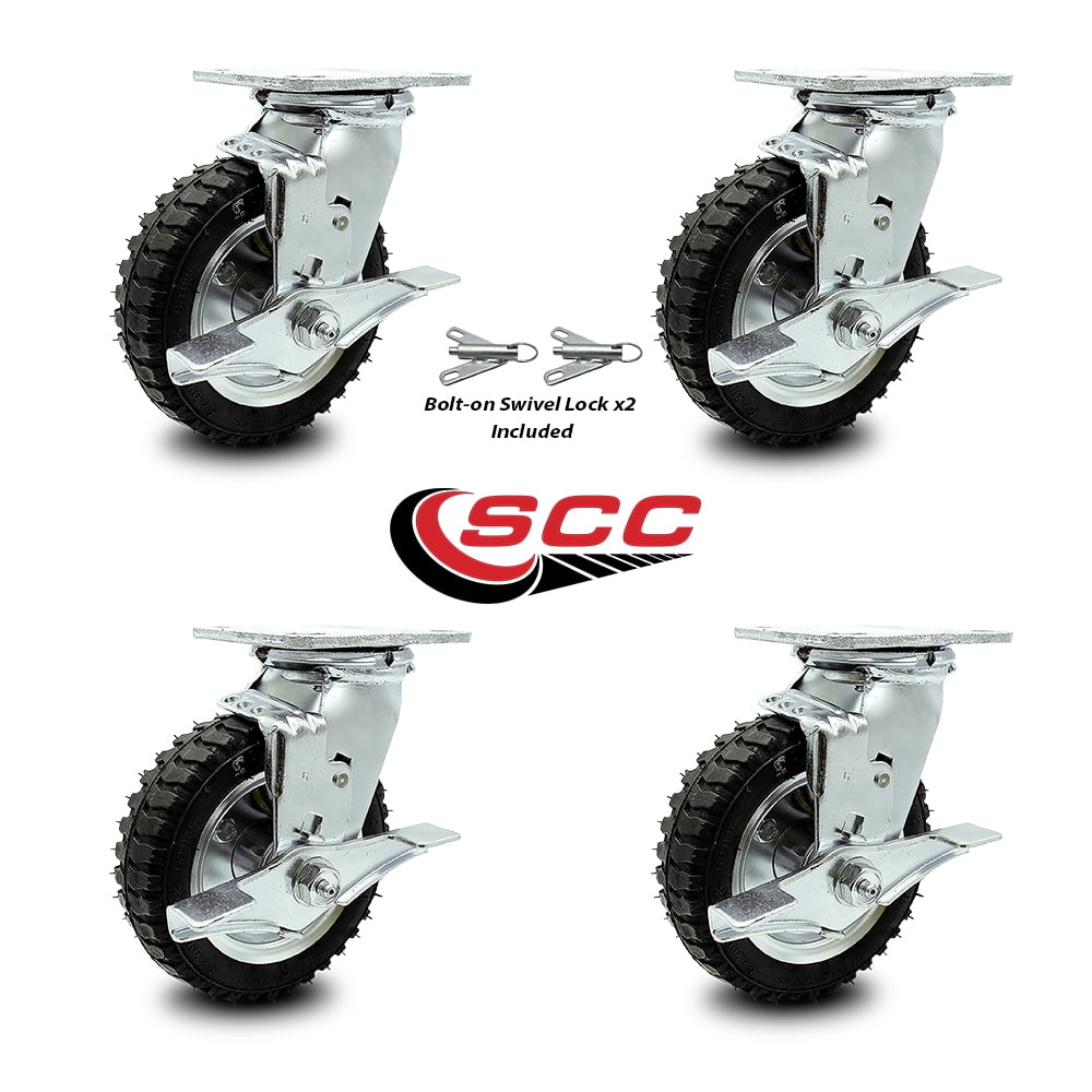 6" Pneumatic Swivel Caster w/Top Lock Brakes Set of 4 Black Rubber Wheel 1,000 lbs. Capacity Pneumatic Casters With Brakes Whether you're looking for a pneumatic. choose pneumatic casters with confidence because there is nothing more noise absorbing and shock isolating than air. Pneumatic Casters With Brakes.