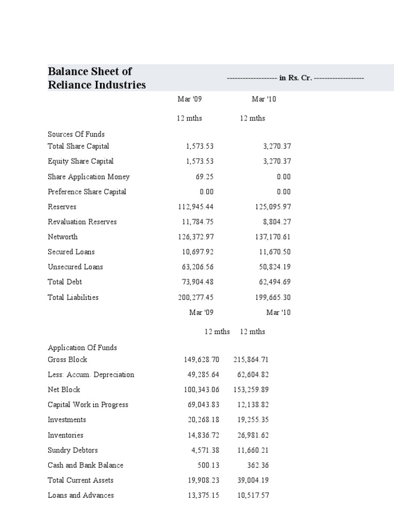 Balance Sheet of Reliance Industries Dividend Revenue