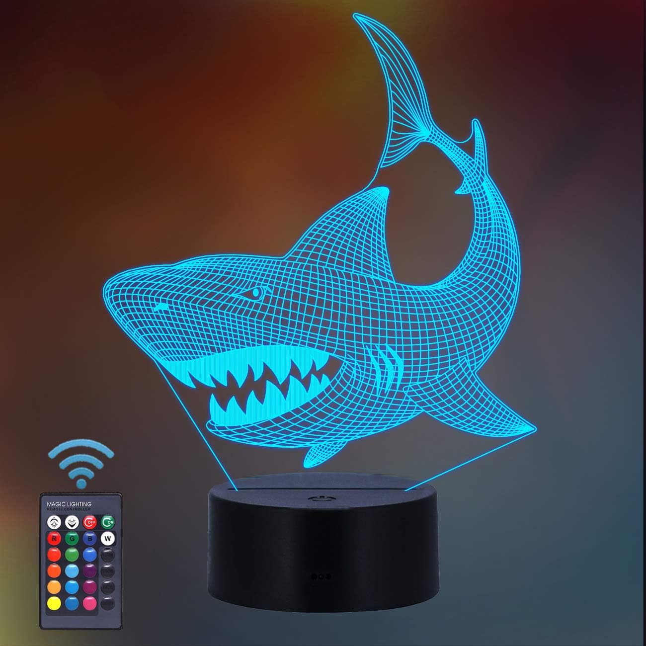 Shark Gifts, Shark Fan 3D Night Light 16 Colors Changing Night Lamp for