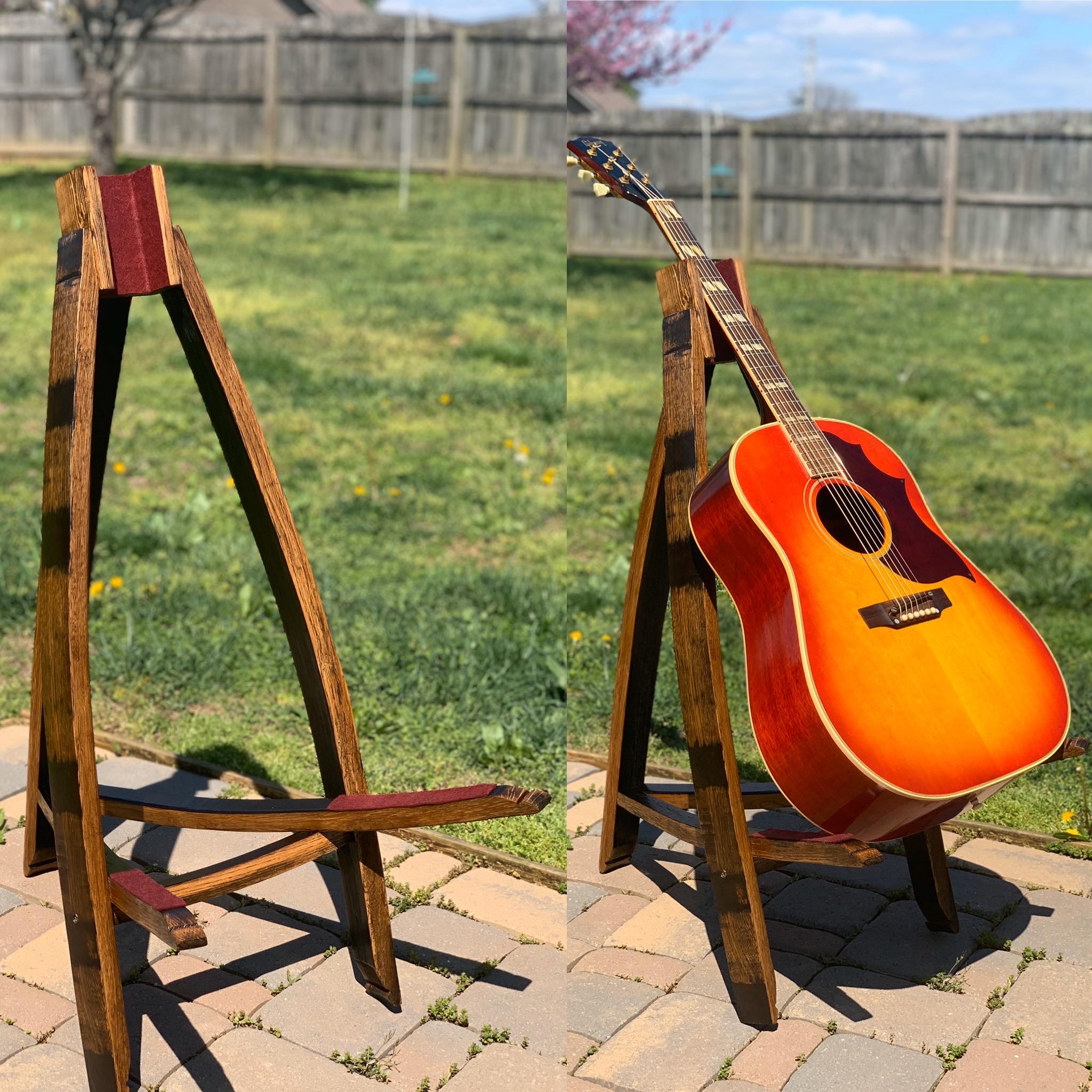I made a guitar stand out of whiskey barrel staves. I think it turned out well. r