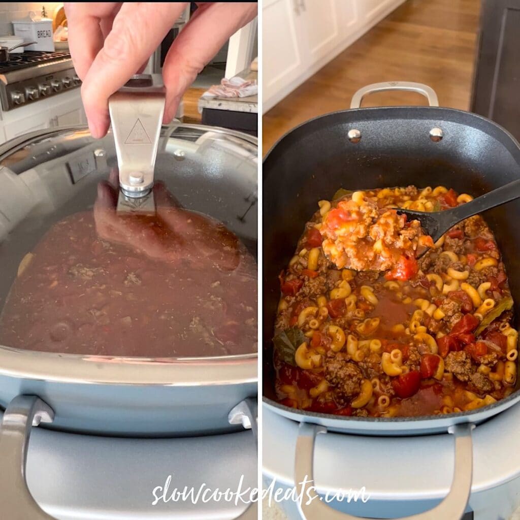 Best Crock Pot American Goulash with Ground Beef and Dry Pasta
