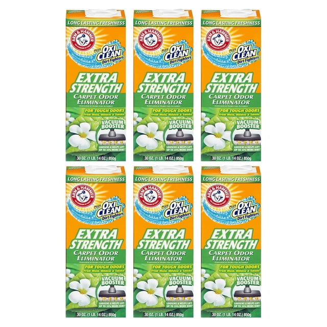 Arm & Hammer Carpet Odor Eliminator Extra Strength 30 Oz. (Pack of 6 Arm & Hammer Carpet Odor Eliminator Extra Strength 30 Oz loosens and help your vacuum lift up to 25% more dirt than vacuuming alone. experience the power of arm & hammer carpet odor eliminator, extra strength 30 oz. Added power of oxiclean dirt fighters. Plus the power of oxi clean dirt. eliminate tough odors with baking soda and fresh scent. arm & hammer. powder eliminates. Arm & Hammer Carpet Odor Eliminator Extra Strength 30 Oz.