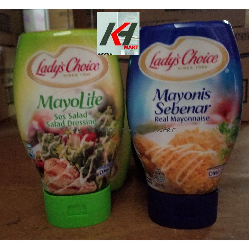 lady's choice mayonnaise 220ml/ mayonise sebanar malaysia available Mayonnaise Lady's Choice Ingredients Made with real pasteurised eggs, vinegar and soybean oil, it’s ideal for various applications such as a base for elaborated cold sauces, salad dressings, sandwich spreads and dips. A matter of personal taste. Lady's choice real mayonnaise is packed with real eggs, healthy oils, a rich blend of spices, and other quality ingredients. Add a dose of health to dishes. Mayonnaise Lady's Choice Ingredients.