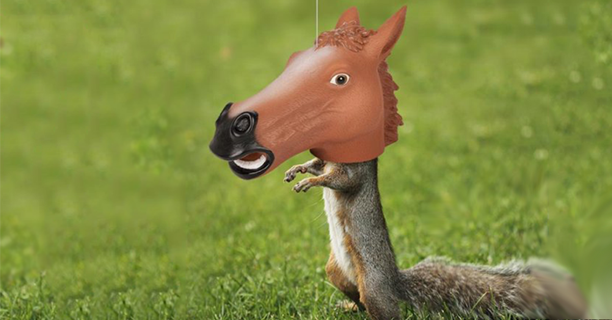 Horse Head Squirrel Feeder Get fast, free shipping with. Hang it with string and fill it with nuts to amuse yourself and the squirrels. This is a funny squirrel feeder. A vinyl horse head feeder that makes squirrels look like they are wearing a mask. 50+ bought in past month. You take this creepy horse mask, shrink it down and put a few nuts. Horse Head Squirrel Feeder.