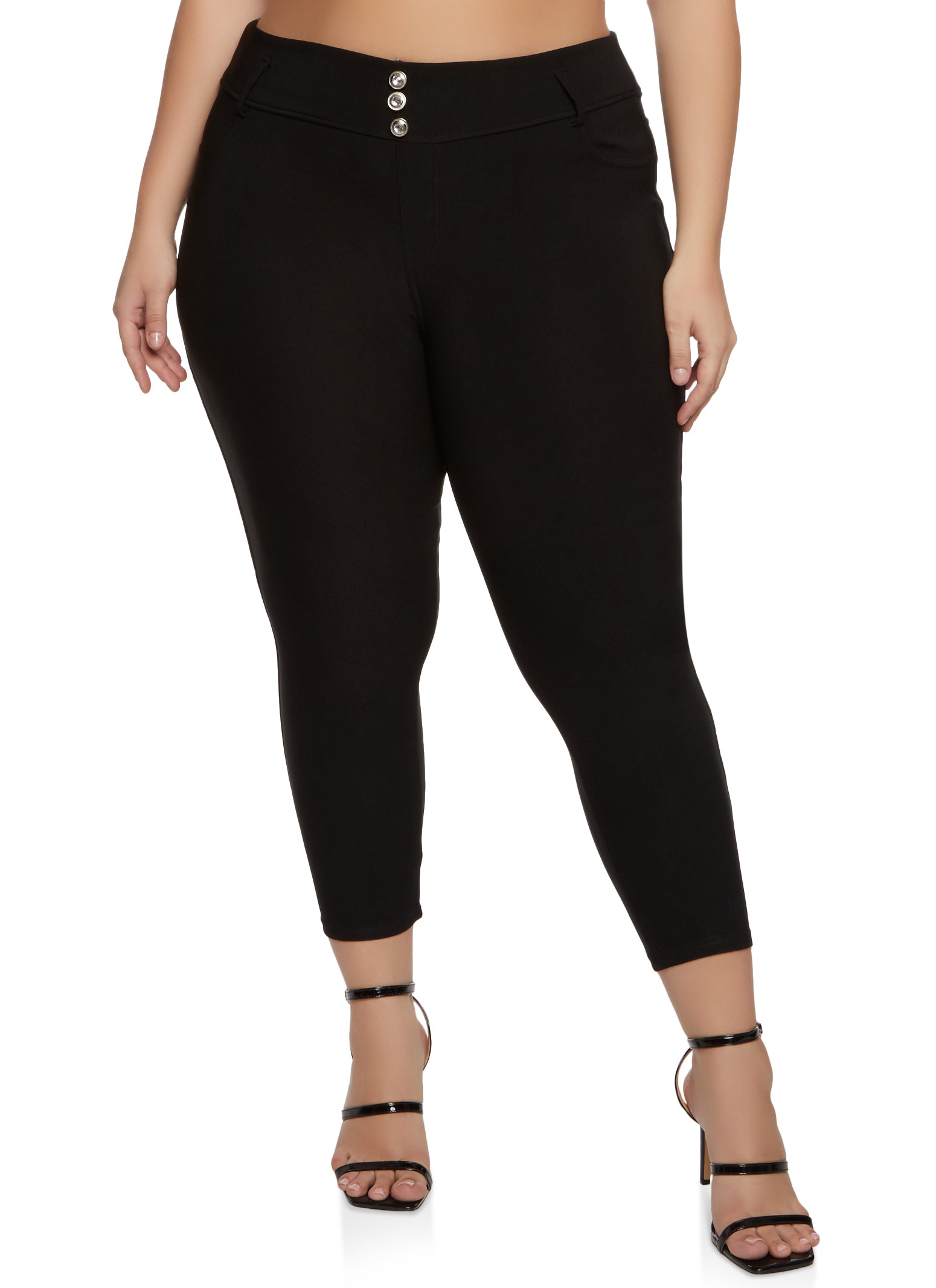 Plus Size Rhinestone Triple Button Capri Pants