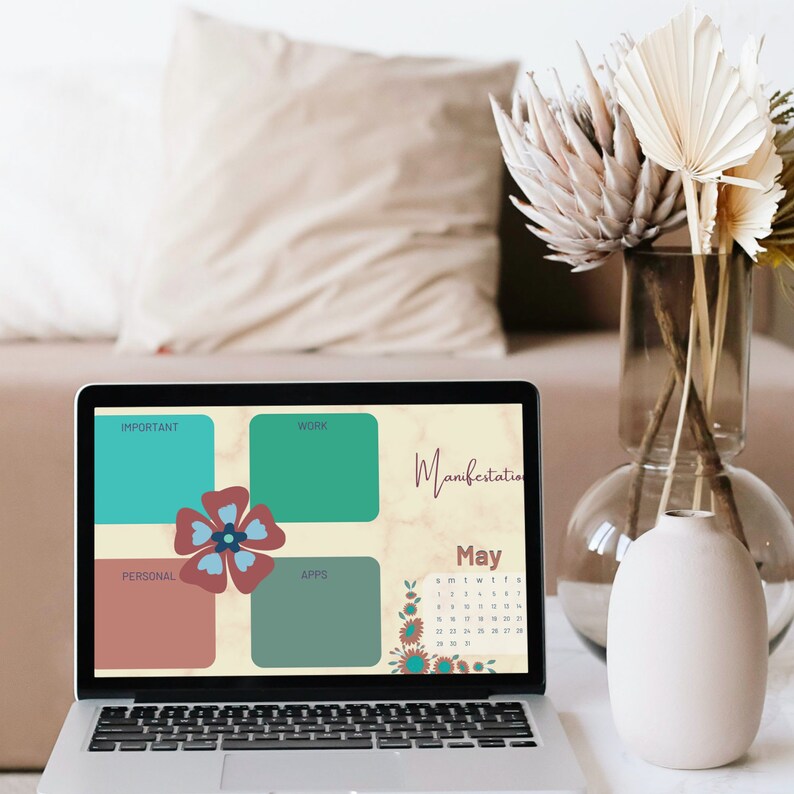 Desktop Wallpaper Calendar 2022 & 2023 Colourful Floral Etsy Hong Kong