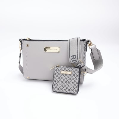 Grey RI monogram cross body bag River Island