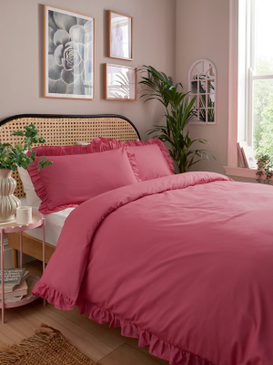 Pink Plain Frill Edge Duvet Set Home at ASDA
