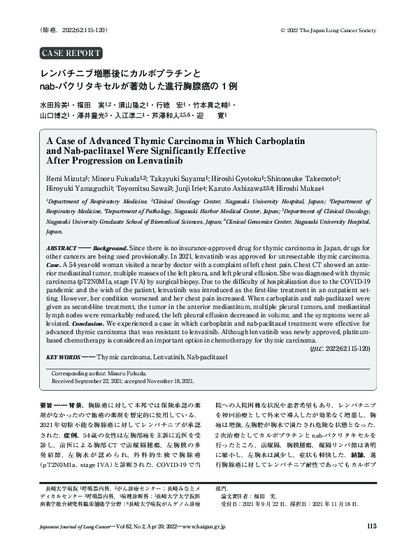 (PDF) A Case of Advanced Thymic Carcinoma in Which Carboplatin and Nab