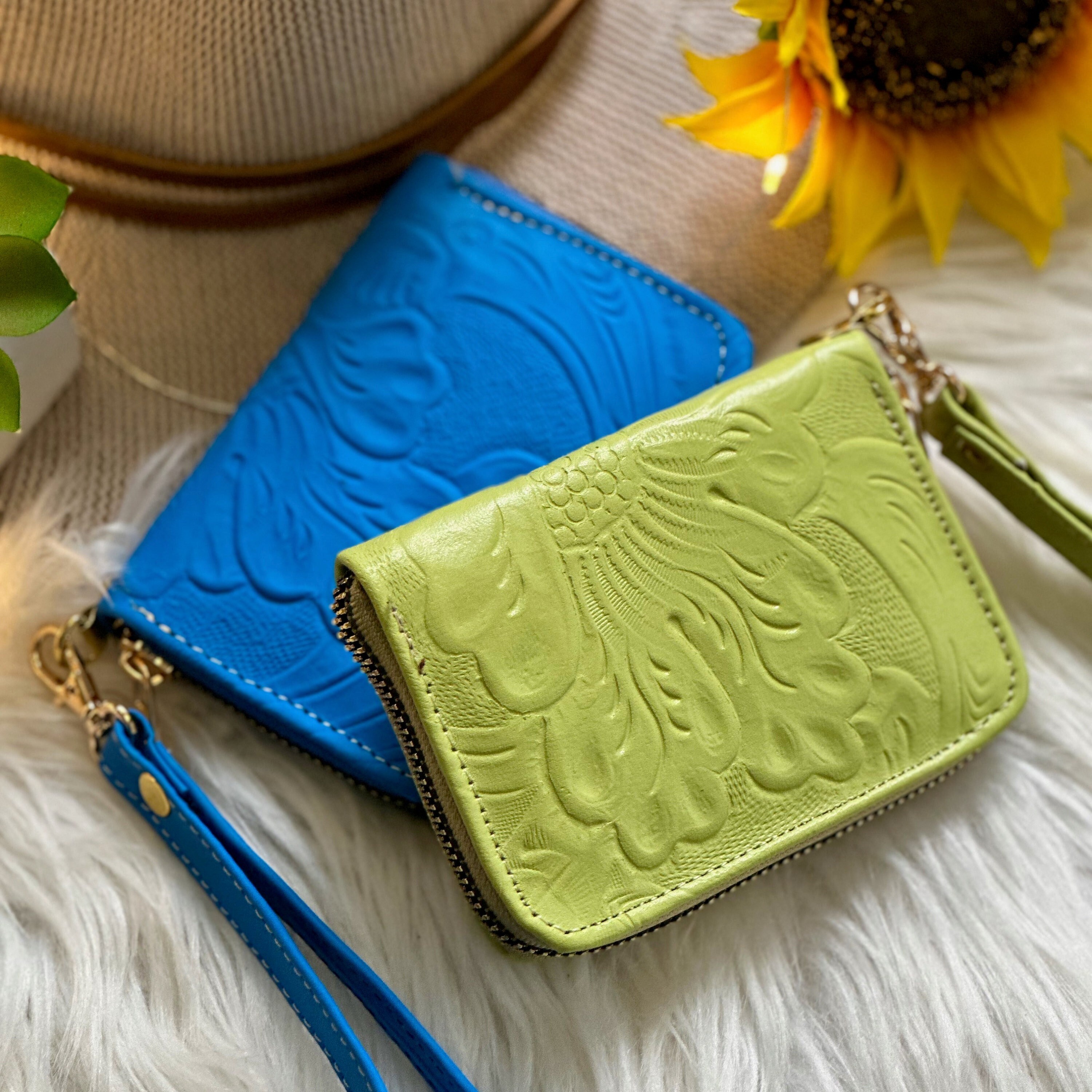Cute embossed leather wristlet for women • women's wristlet wallet