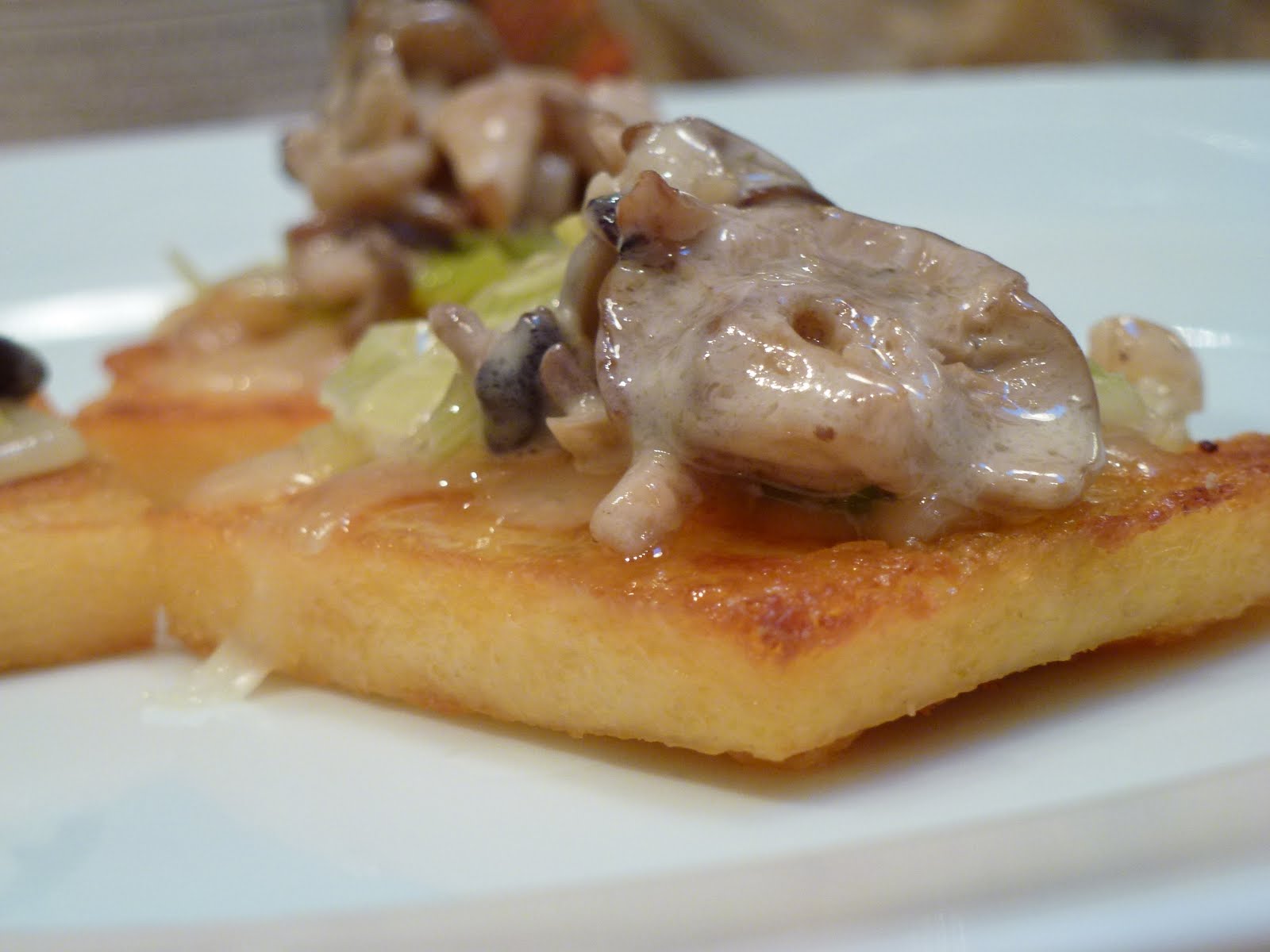 Hardly Housewives Crispy Polenta Squares with Mushroom Ragu and Leek Jam Polenta Squares With Mushroom Ragu Arrange the polenta squares on. Fry the squares in the pan until golden brown and warmed through. To serve, top the squares with warm mushroom ragu. Season the ragu to taste, with more salt and pepper is necessary. Delicious cheesy mushroom ragu served over polenta squares. Cut the polenta into 36 bite. Cut the polenta into 36 bite sized squares.. Polenta Squares With Mushroom Ragu.