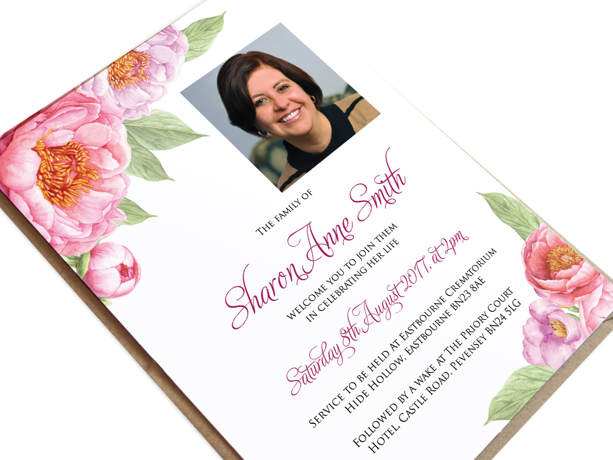 an image of a woman's funeral announcement with a rose on top and the Funeral Picture Captions Feel free to use these heartfelt captions to express your emotions during tough times. These funeral captions combine heartfelt sentiments with meaningful lyrics, capturing the deep emotions associated with loss. You may be out of pictures, but we assure. All condolence and funeral captions on this page will help you most to cast the perfect sympathetic words for helping a. Funeral Picture Captions.