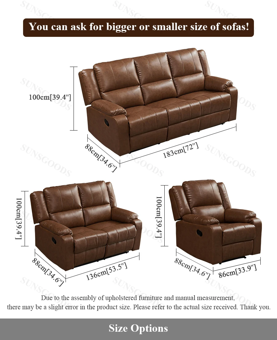 Custom Brown Leather Electric Recliner Sofa,Brown Leather Power