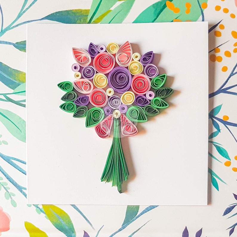 Bouquet Quilling Card Quilling Cards Birthday Quilling Etsy Quilling Bouquet Card In this short clip, i share how to make a handmade card with a bouquet, in the paper quilling technique. Schau dir unsere auswahl an quilled bouquet card an, um die tollsten einzigartigen oder spezialgefertigten, handgemachten stücke aus. This playful flower bouquet shows all of your seasonal favorite flowers. Each little petal of the flowers of the. Mail a birthday. Quilling Bouquet Card.