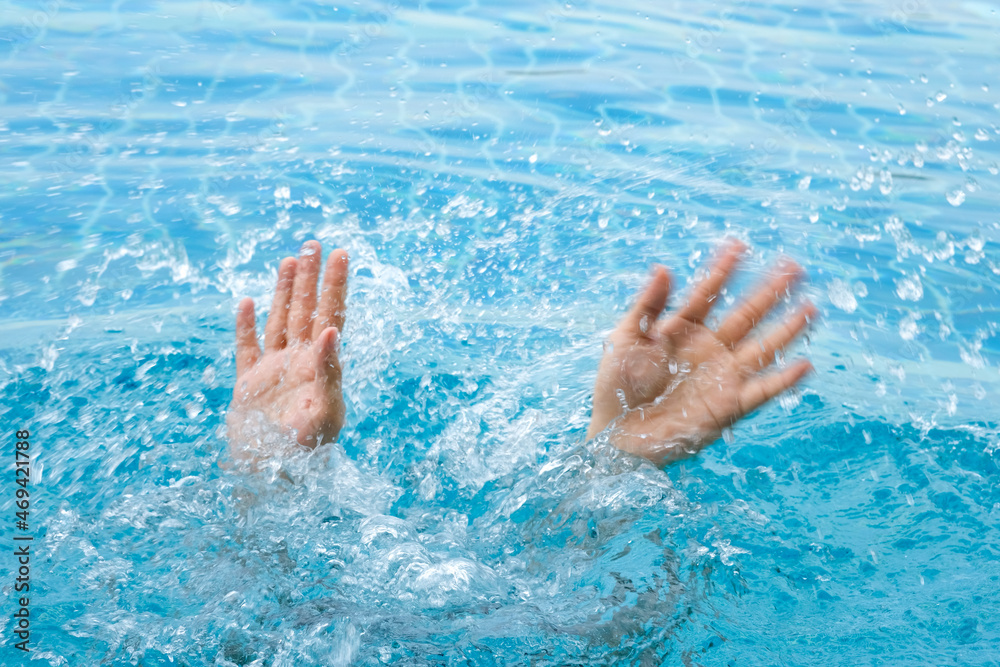The man's hand drowned, he lifted his hand and asked for help from