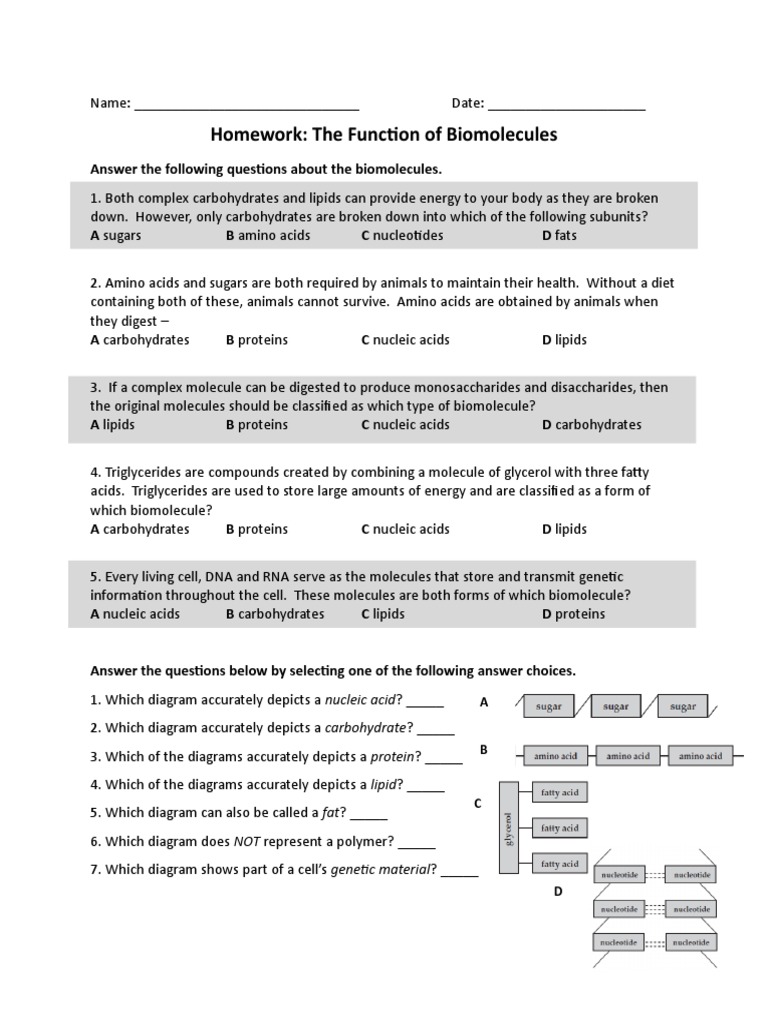 Biomolecules Worksheet Answers Biomolecules Review Worksheet Develop a review sheet or worksheet that covers the main biomolecule types, including carbohydrates, lipids, proteins, and nucleic acids. Organic molecules are the molecules which exist in all living things. They exist in all living things and are life's building blocks. Biomolecule review worksheet organic molecules. Match the term on the right with the definition. Include questions that address the.. Biomolecules Review Worksheet.