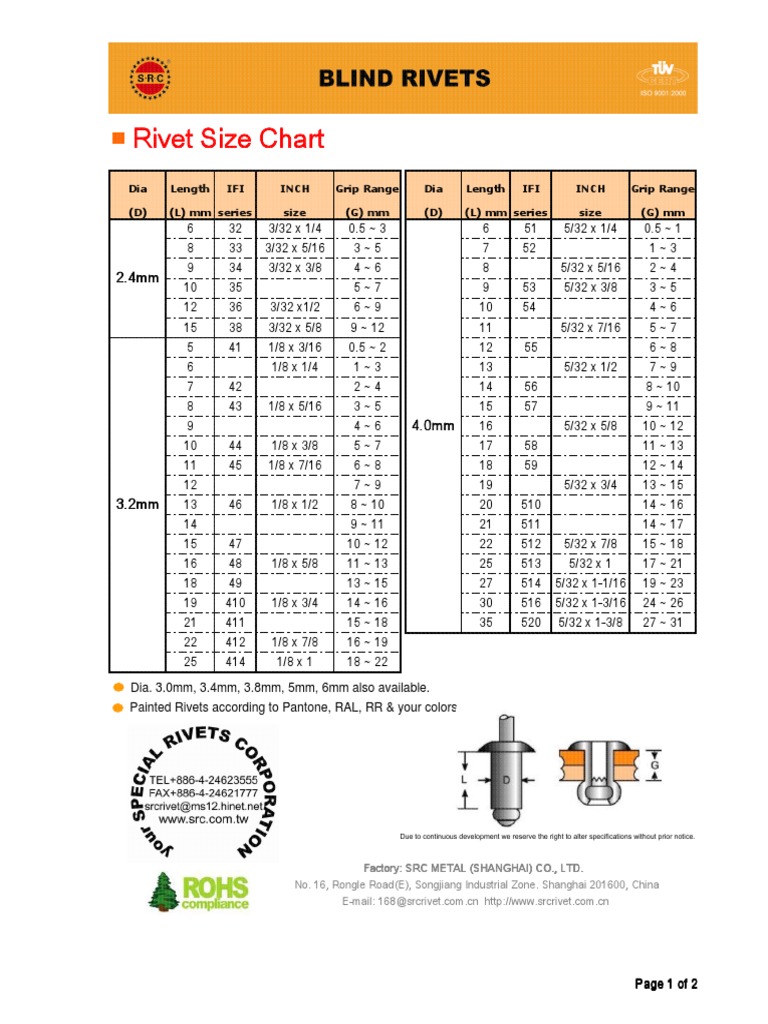 Rivet Size Chart Rivet Size Chart Rivet Size Chart Rivet Size Chart PDF