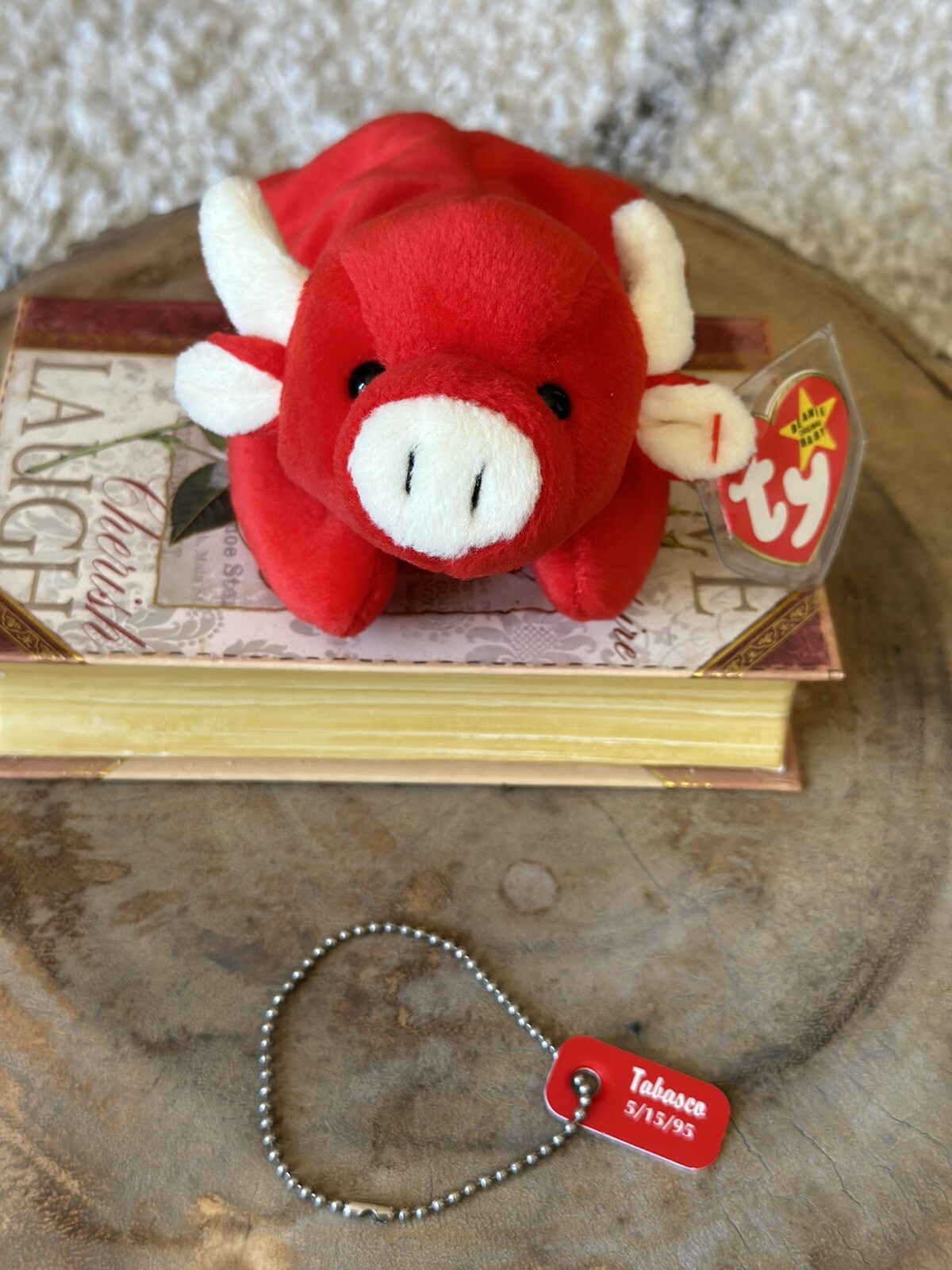 Tabasco The Bull Other users comment on the cuteness and value of the plush toy. Both have the same style number and birthday. Tabasco didn’t have the cream coloured hooves that snort does. A user shares a photo of tabasco the bull, a rare beanie baby, that they bought at a thrift store. Although tabasco is not so tall. He loves to play. Tabasco The Bull.