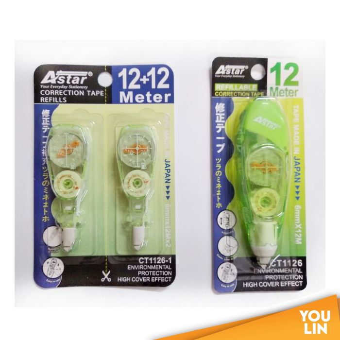 Correction Tape ASTAR Correction Tape Refill Astar 6 m x 5 mm | refillable | stainless metal tip | colour: Packing quantity = 12 pcs / box. 6 m x 5 mm | refill for ct6005 correction tape. Check out for more product info by. Metal roller head with cap. 4.2mm x 6m x 2pcs price shown for a set of refills of 2. Astar correction tape. Correction Tape Refill Astar.