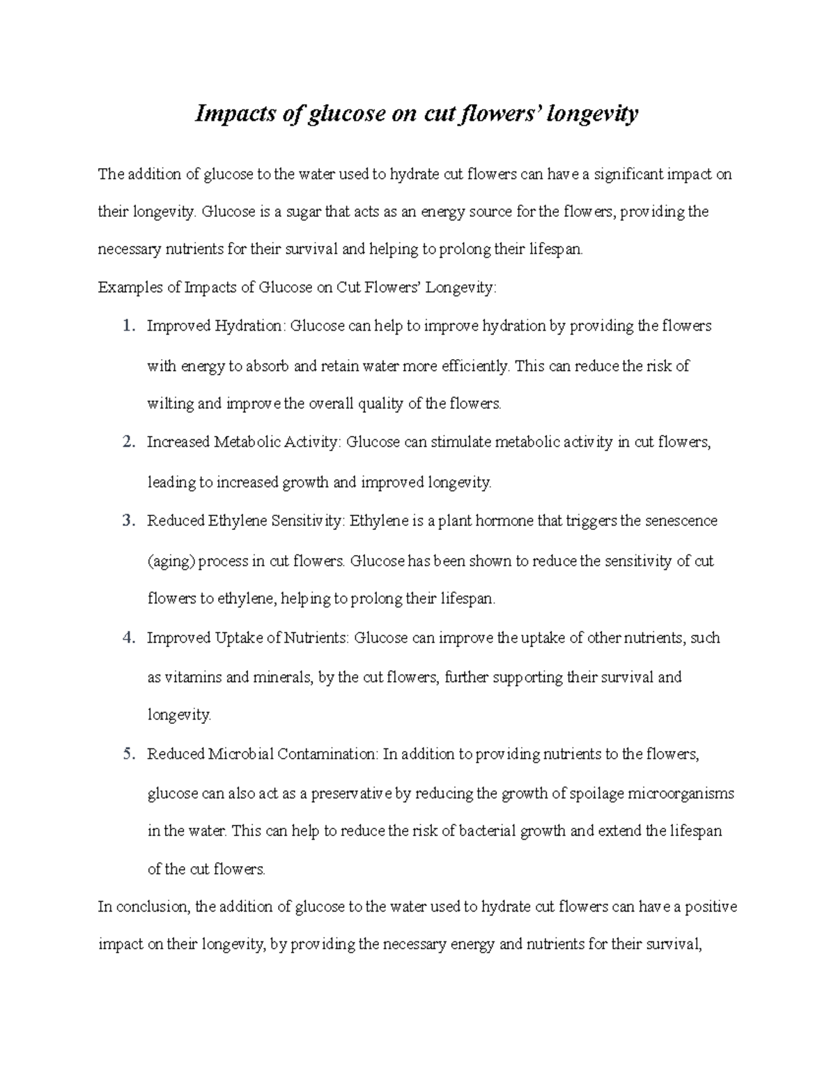 Notes on Impacts of glucose on cut flowers’ longevity Impacts of