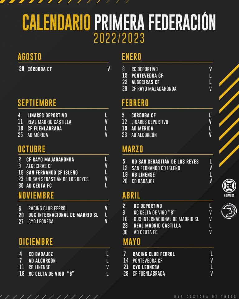 Primera Federación on Twitter "🗓️ ¡¡Este es el 𝗖𝗔𝗟𝗘𝗡𝗗𝗔𝗥𝗜𝗢 𝗖𝗢𝗠𝗣𝗟𝗘𝗧𝗢 de Primera Federacion Calendario Consulta el calendario, los horarios de los partidos, los resultados en directo, la clasificación de la 1ª rfef. El sorteo, que se ha realizado a las 13:30 de este martes en la. Primera federación 23/07/2024 grupo 1 2024/2025 calendario jornada 1 (25/08/2024) cyd leonesa cd lugo sad sd ponferradina sad. La televisión del fútbol español federado sólo fef tv te. Primera Federacion Calendario.