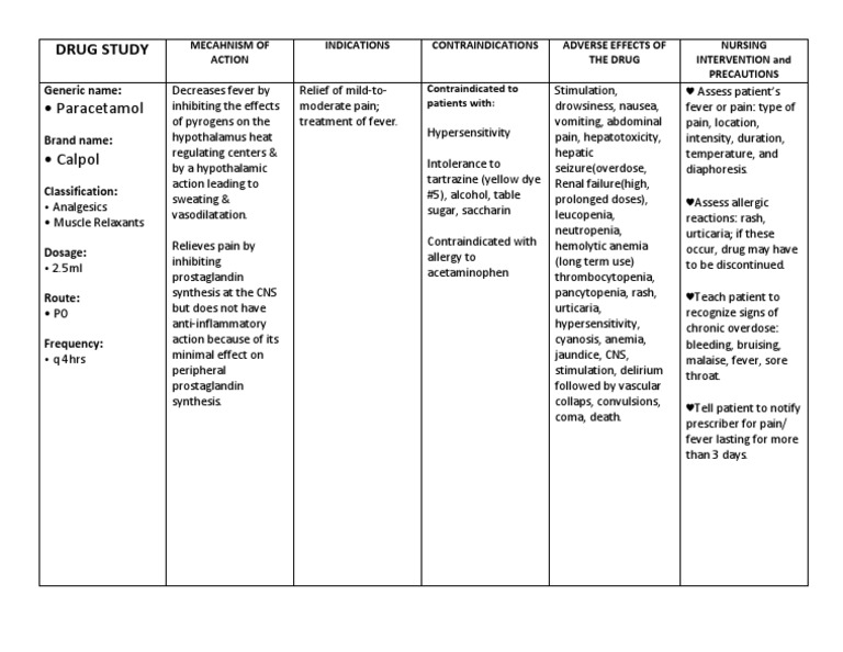 Drug Study Paracetamol PDF Fever Analgesic