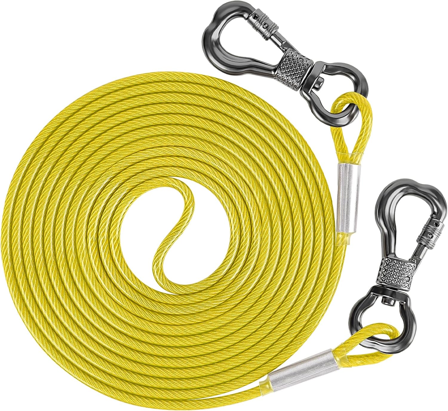 16' Heavy Duty Coiled Tie Out Cable for Dogs Cable Dog Tie Out Top paw® dog tie out; Best overall dog tie out cable: With the titan® heavy cable dog tie out, you can rest easy knowing your large breed dog won't pull a houdini and escape from the yard. Whether it's at the beach, the campsite, or just at home in the backyard, a dog tie out gives your dog the freedom. Cable Dog Tie Out.