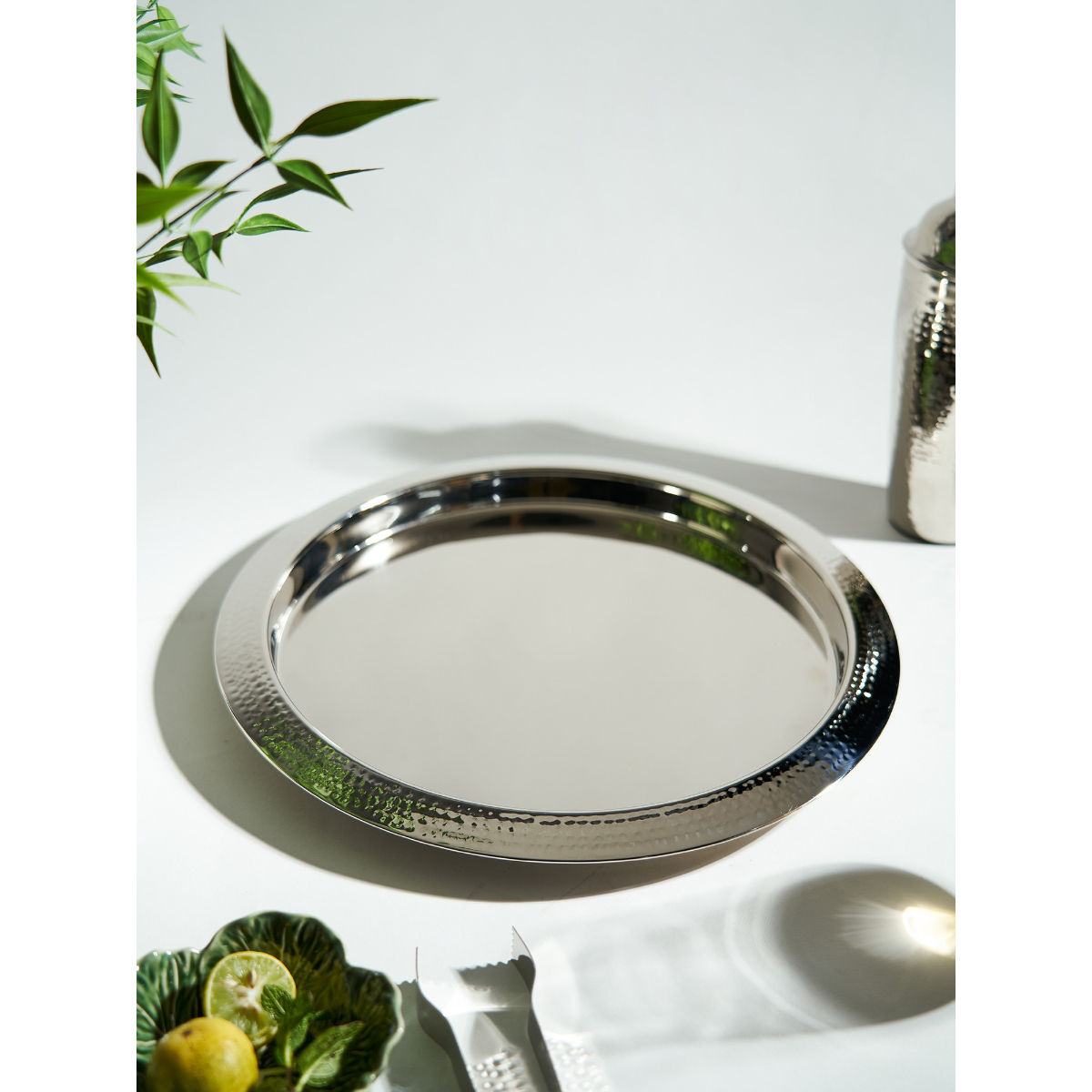 Buy Pure Home + Living Silver Hammered Metal Round Tray Online