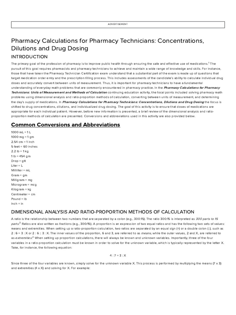 Pharmacy Calculations For Pharmacy Technicians Concentrations