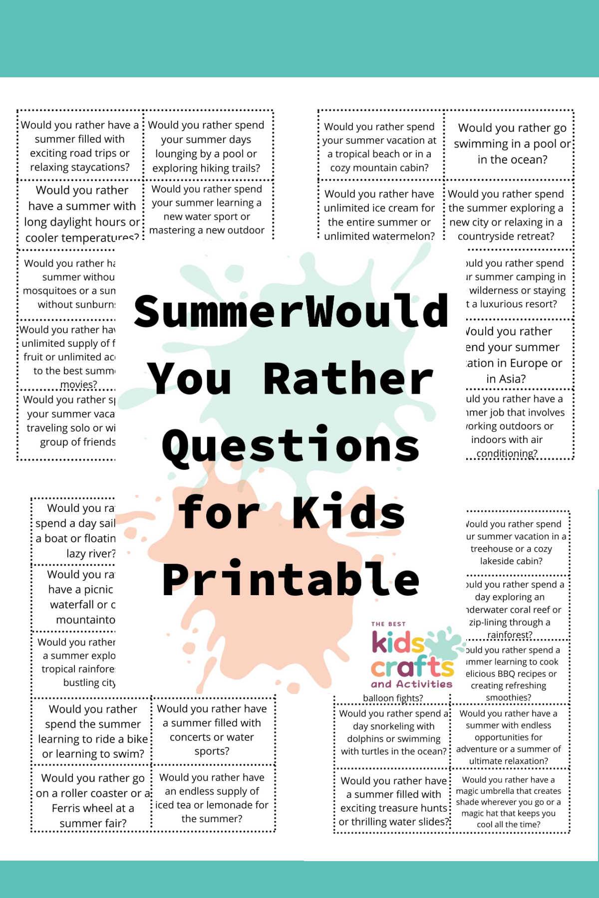 Summer Would You Rather Questions for Kids + FREE Printable
