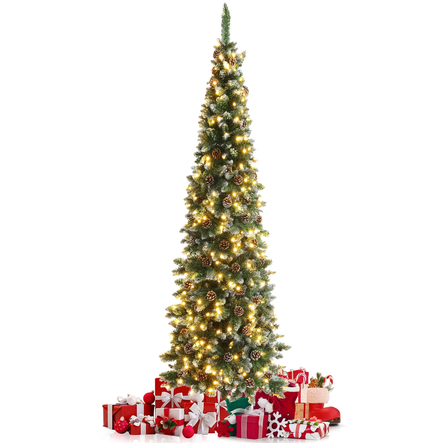 Costway 6.5 ft. PreLit Hinged Artificial Pencil Christmas Tree with Pre Lit Frosted Pencil Christmas Tree The long, slender design is perfect as both an accent to any entryway or a centerpiece for a festive display. Pre Lit Frosted Pencil Christmas Tree.