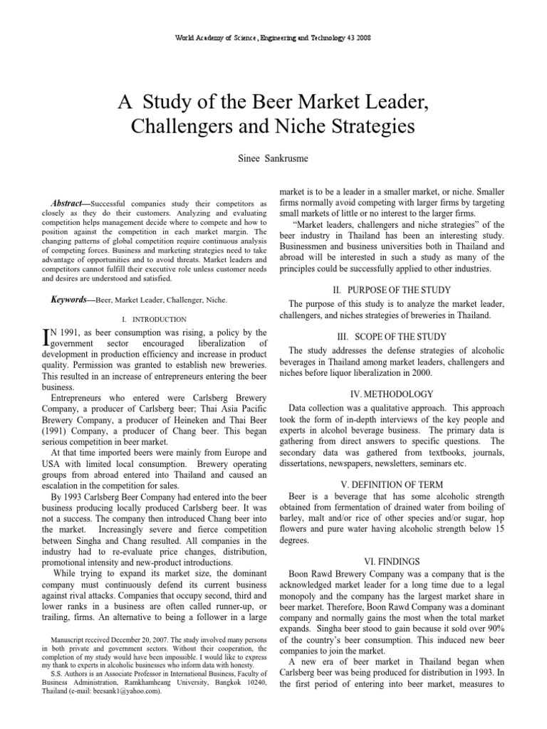 A Study of The Beer Market Leader Challengers and Niche Strategies