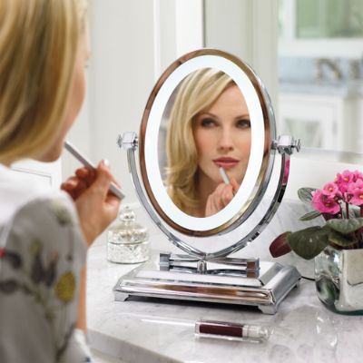 Frontgate Lighted Vanity Mirrors Our exclusive smart touch lighted vanity mirror automatically delivers your preferred level of soft, natural led light. Our exclusive smart touch lighted vanity mirror automatically delivers your preferred level of soft, natural led light. It features a large, high quality round mirror with optical quality glass, mounted on. Bring elegant focus to your vanity and your beauty routine. Simply tap the base to. Illuminate your face at any angle while using 70% less energy with the led lighted rechargeable vanity mirror.