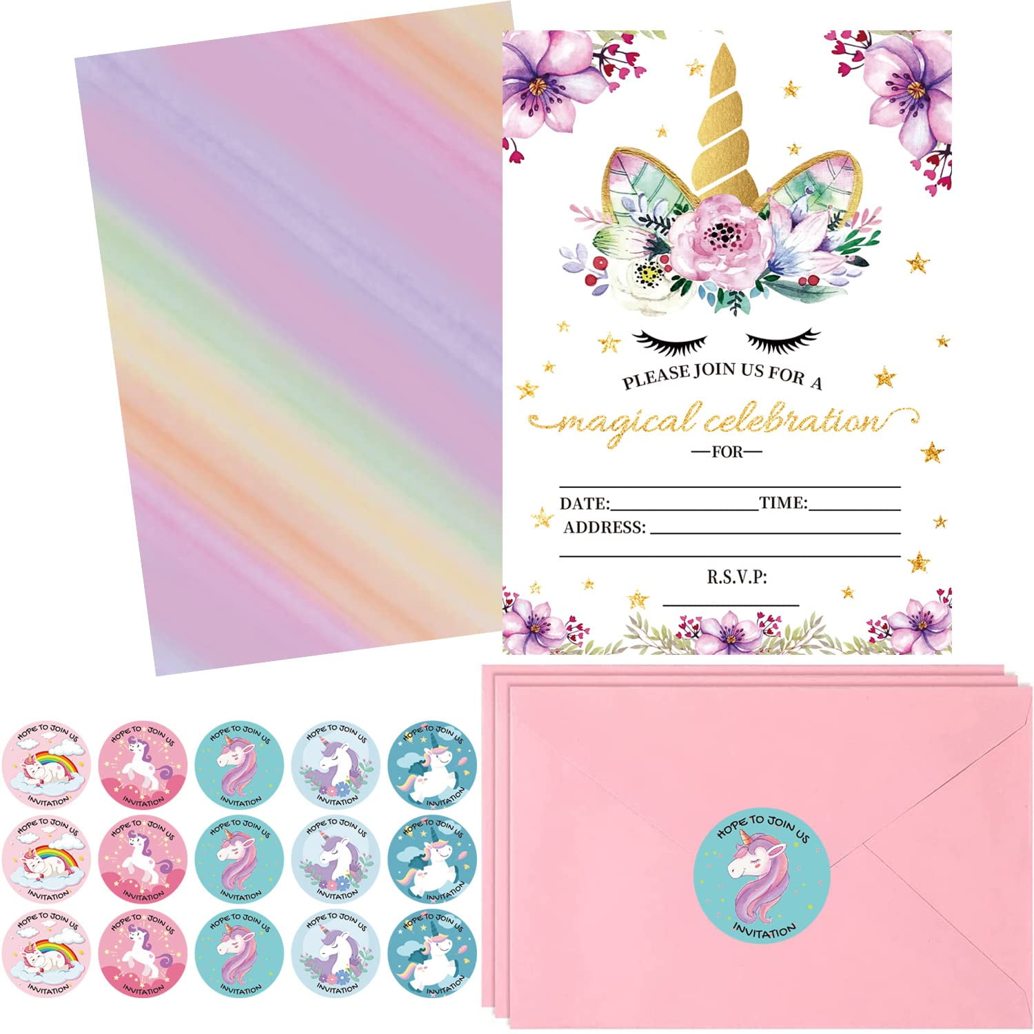 Haizct 15 Pack DoubleSided Unicorn Birthday Party Invitations Cards Unicorn Party Invitation Card Factory Download, print, send online with rsvp for free or order printed. Featuring a delightful pastel unicorn prancing amidst softly colored clouds and twinkling stars, this design is perfect for celebrating a magical. An adorable kids birthday photo card with a unicorn illustration. Create your own unicorn party invitation cards in minutes with our invitation maker. The pink and gold design. Unicorn Party Invitation Card Factory.