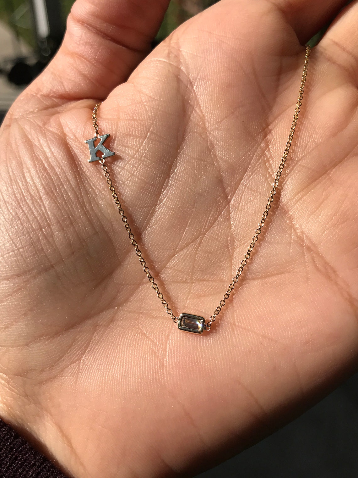14K Solid Gold Baguette Diamond Initial Necklace Letter Etsy