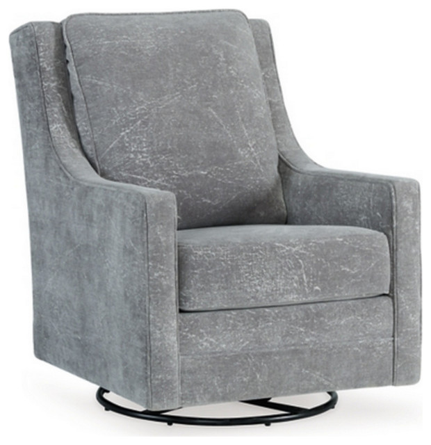 38" Swivel Glider Accent Chair, Sloped Arms, Soft Padding, Ash Gray