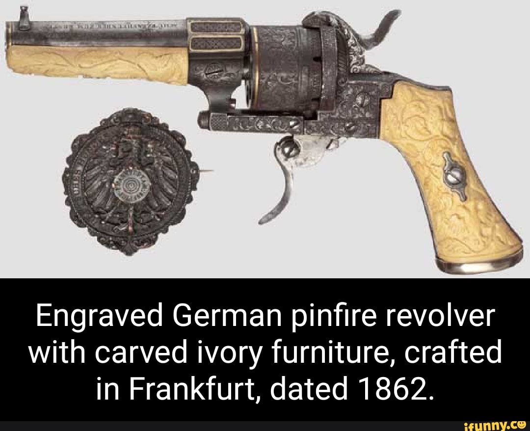 Antique German Pinfire Revolver 001 Ancestry Guns German Pinfire Revolver Your revolver is chambered for.43 caliber (and ammunition for it. The pinfire ignition system was invented by casimir lefauchaux in 1828 but wasn't widely used until the 1850's. Todays we are looking at an assortment of pinfire revolvers, to get some basic idea for the sort of variety that was made over. Checkered wood grips and folding trigger. It’s a. German Pinfire Revolver.