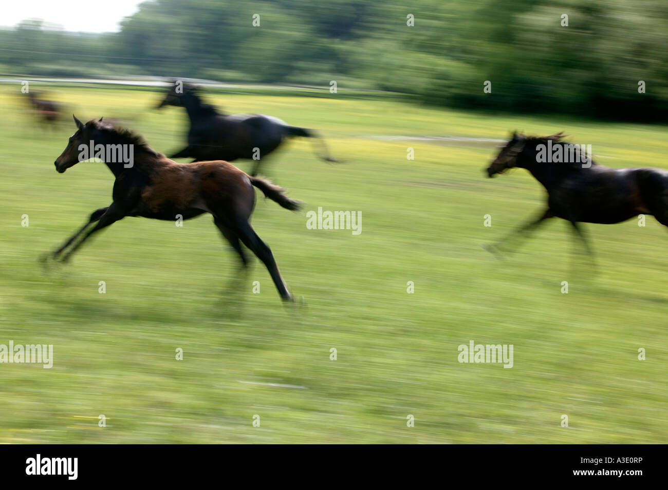 Young Horses Running On Thoroughbred Horse Farm In Chester County